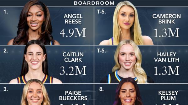 WNBA球星社交媒体粉丝数排名:里斯以490万居首,克拉克以320万位列第二