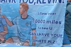 球迷手持德布劳内海报现场:跨越万里来见你,能否送我你的球衣?