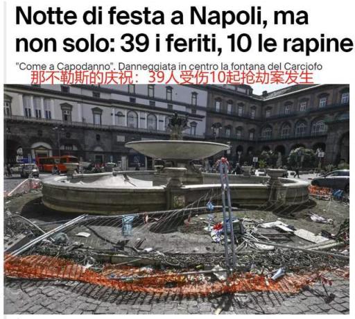 《米兰体育报》表示,周五深夜的那不勒斯“如同跨年之夜”,球迷在狂欢,也有人趁机作乱。那不勒斯警方一共收到10起抢劫案、7起袭击案的报警,造成3人受伤。算上在住进医院的36名伤者,至少有39人受伤。