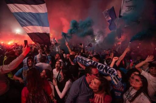 当地时间周五晚上,意甲第38轮,凭借麦克托米奈、卢卡库的进球,那不勒斯主场2-0战胜卡利亚里。这场胜利,意味着那不勒斯以82分的成绩夺冠。在马拉多纳球场,在那不勒斯的街道、广场、酒吧,球迷为意甲第4冠而疯狂。
