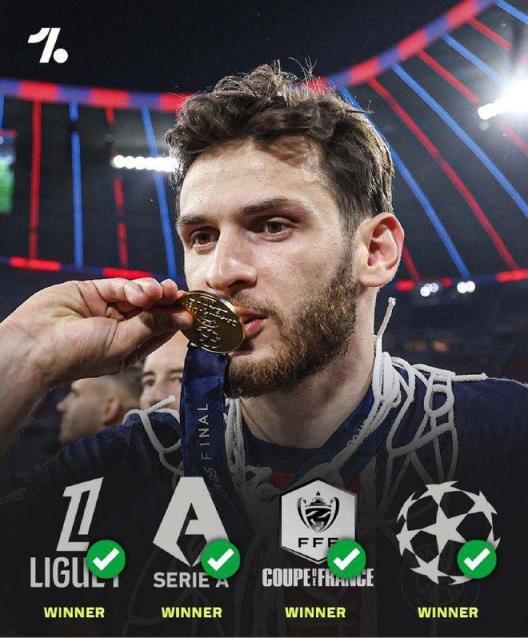 雷速体育6月1日讯 欧冠决赛,巴黎圣日耳曼以5-0击败国际米兰,夺得欧冠冠军。克瓦拉茨赫利亚本赛季拿到四座奖杯,也是第一位在欧冠决赛进球的格鲁吉亚球员。